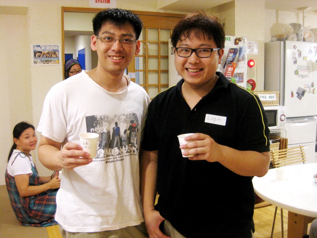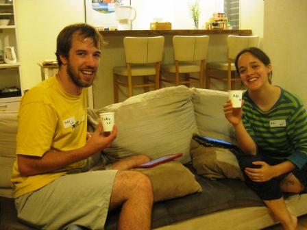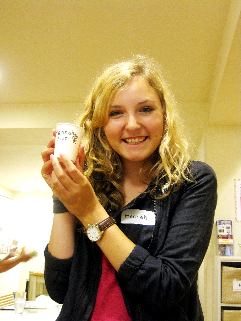 このイベントが始まる前にいつもゲストにネームタグと紙コップを渡します。