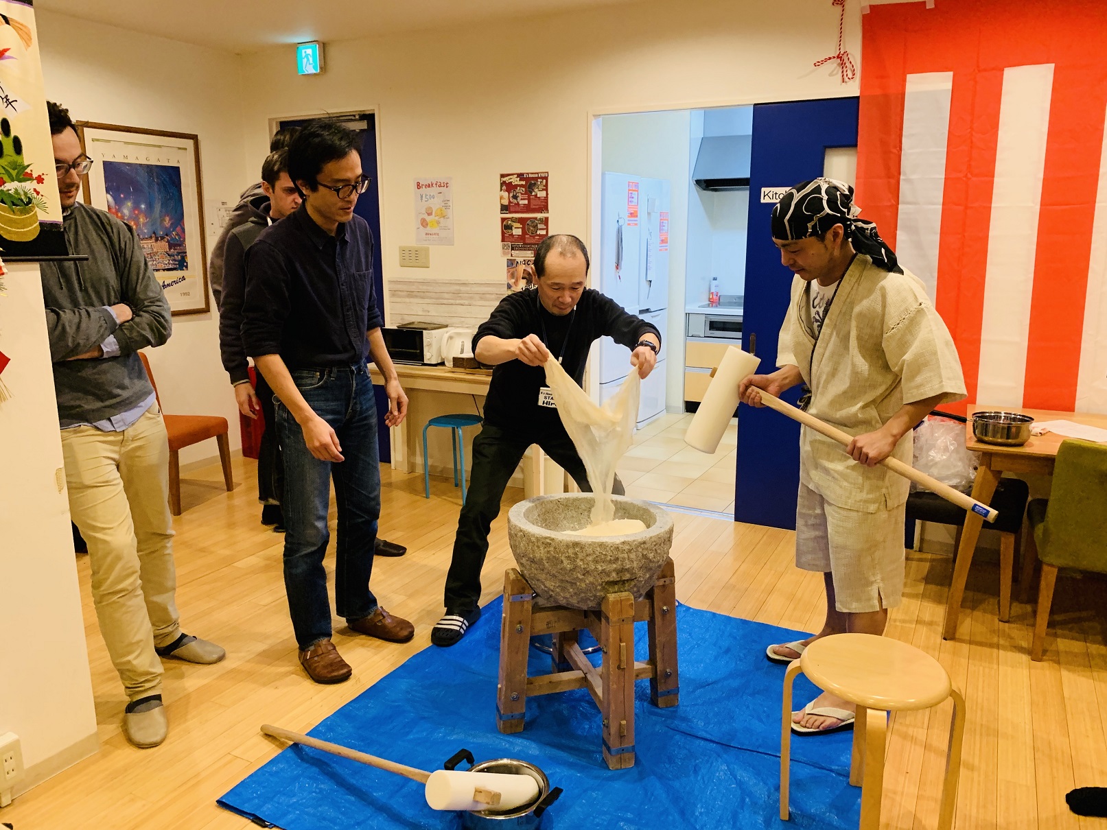 今日は四人のゲストと清掃スタッフの一人が参加してくれています。
