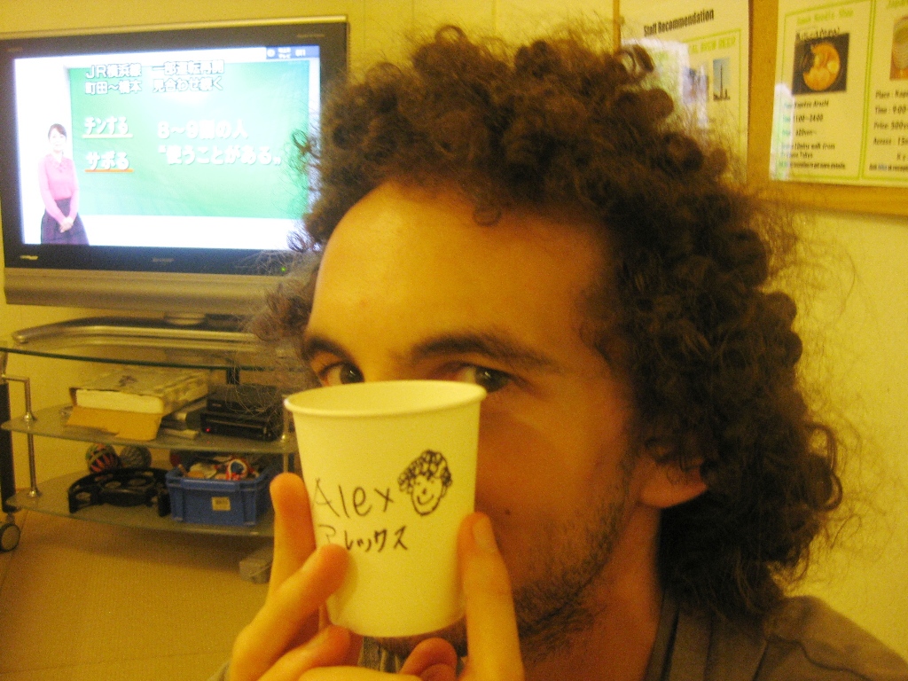 He stays with us a lots of time at K's House Tokyo :)