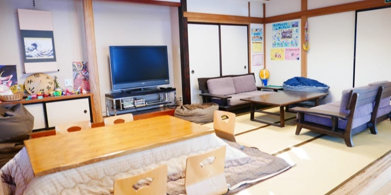 1Fの共用ラウンジの畳スペース 冬にはコタツを設置しております