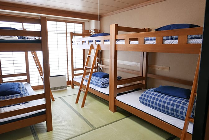 4名女性専用相部屋、2段ベッド。読書灯あり。