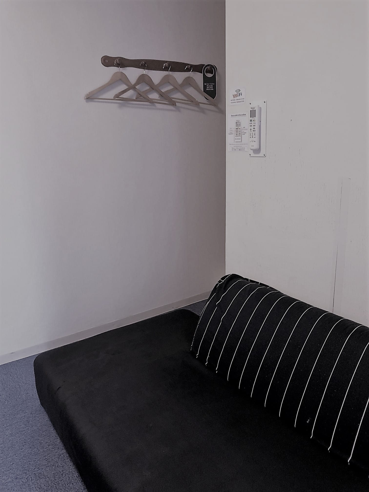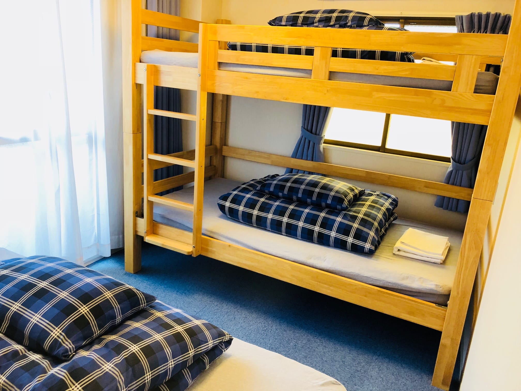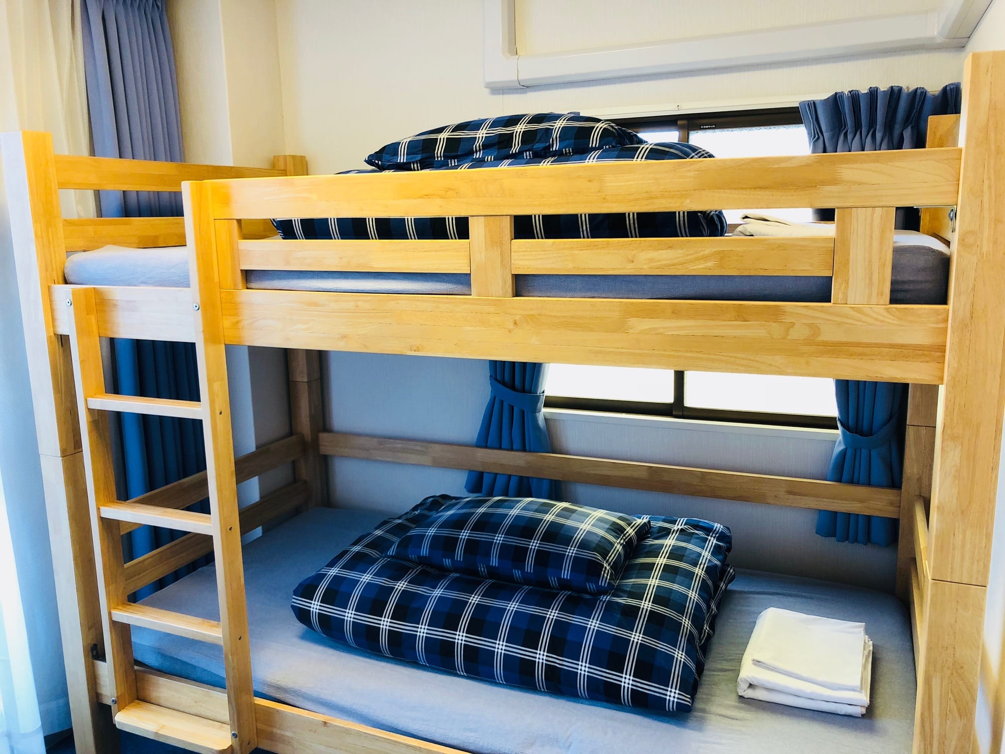 2名様でのご利用、2段ベッド、ソファー、バス・トイレがお部屋に付いております。