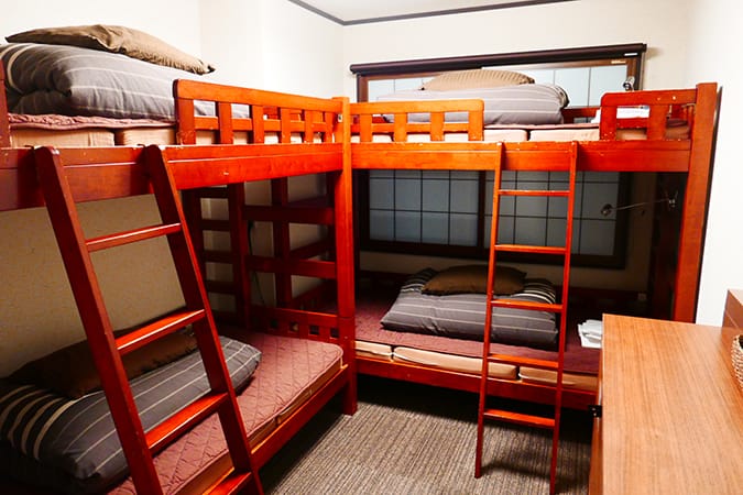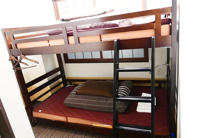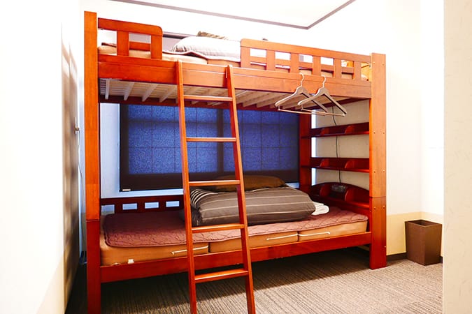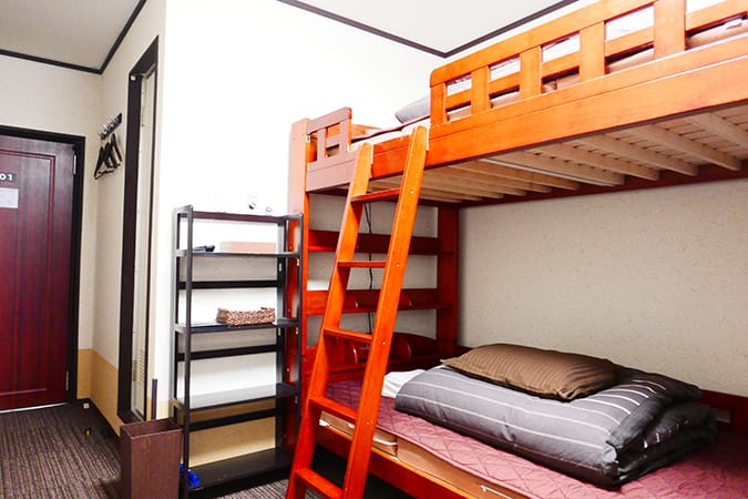 Compact 2 person private room with bunk bed.