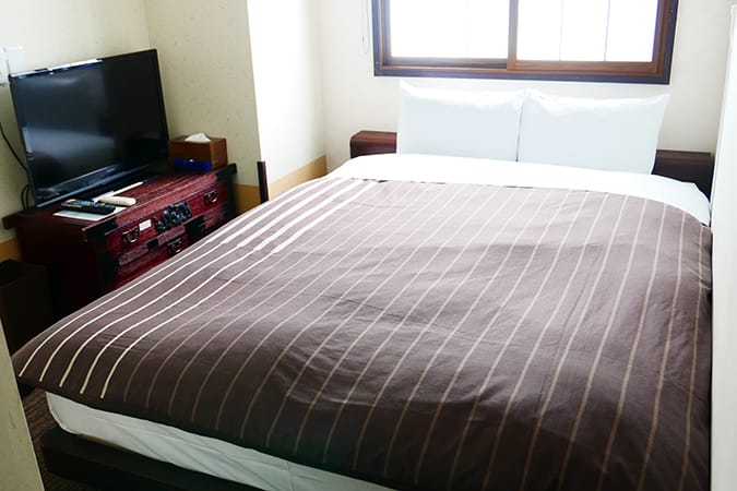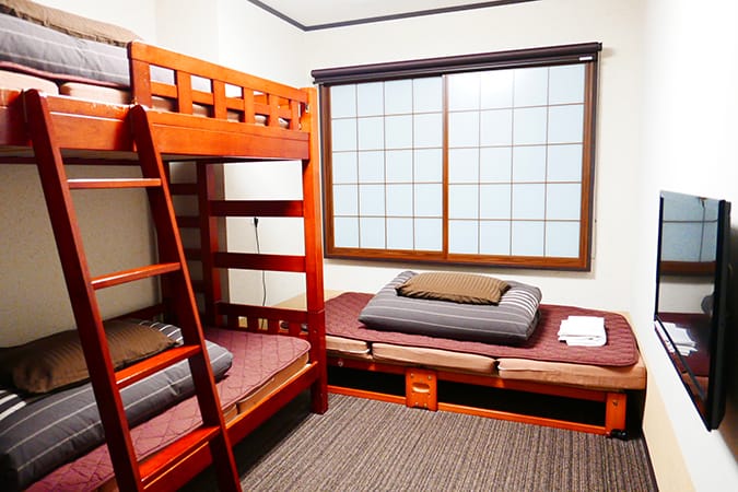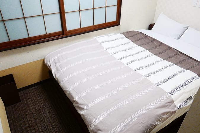 2 people private room with 150cm double bed and tatami seating space, private shower and toilet.