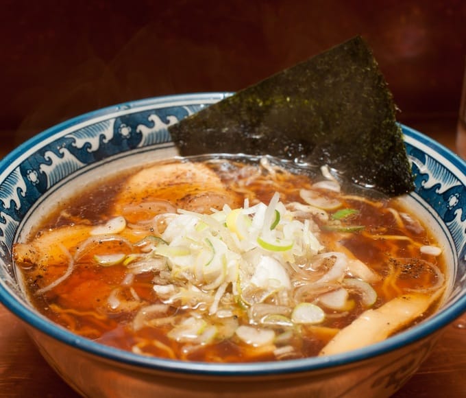 The features of Takayama Ramen are thin curly noodles and light soup made from soy sauce and broth.