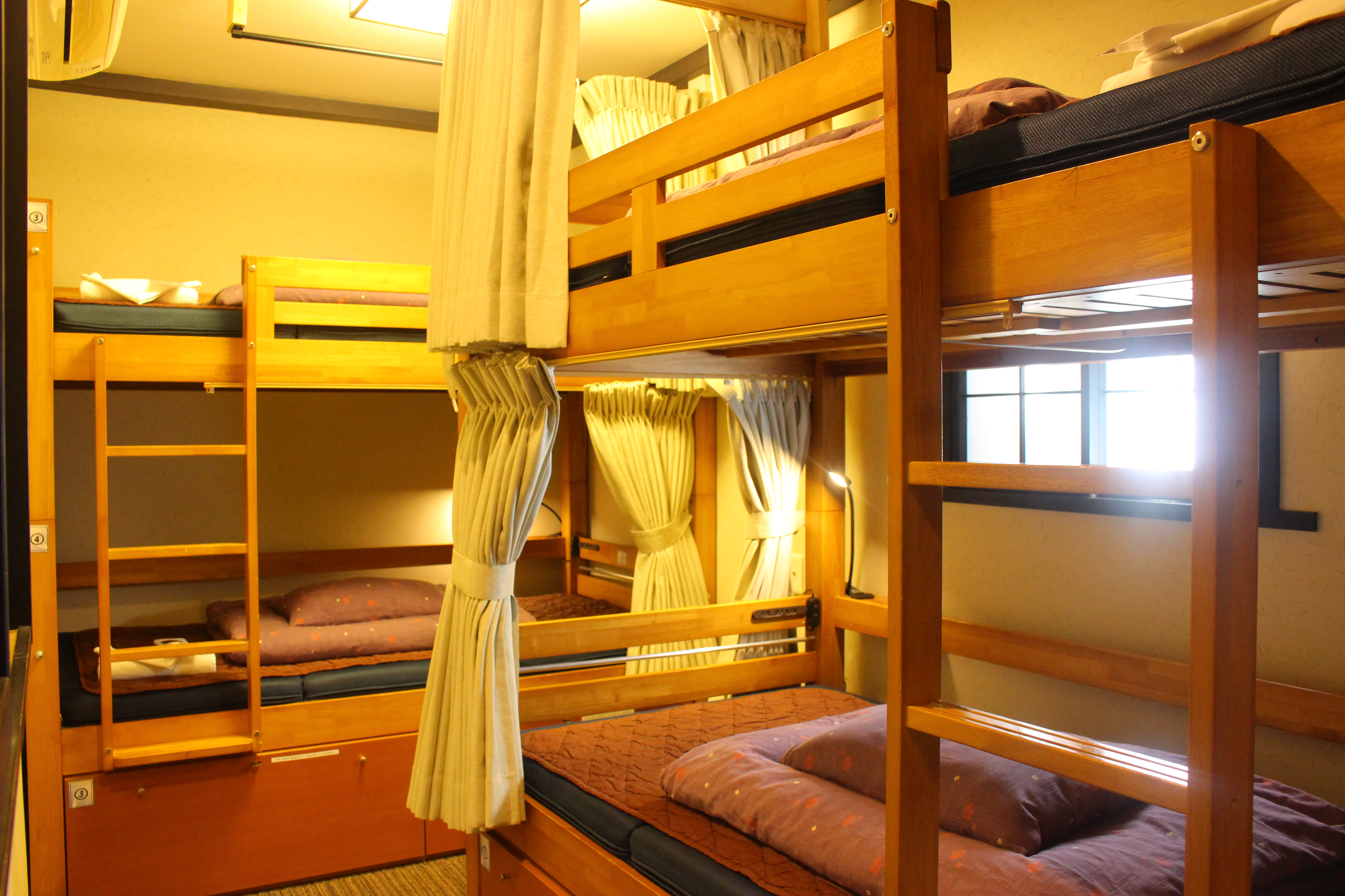 4名男女共用相部屋、2段ベッドです。トイレ・シャワー・洗面がお部屋に付いております。(ベッドカーテンはございません)